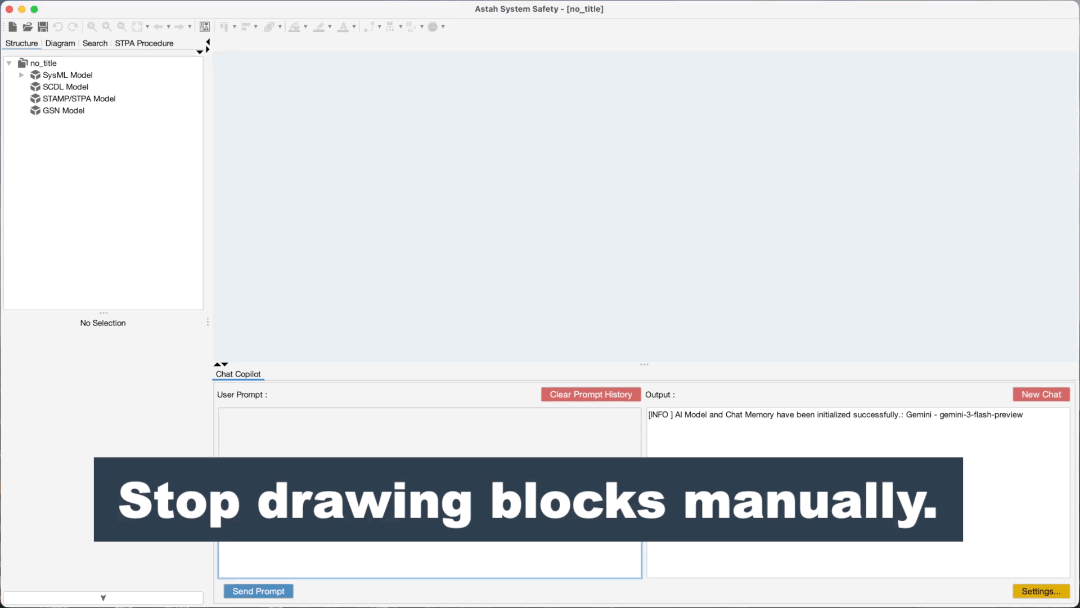 In version 11, the AI Chat Copilot is optimized exclusively for SysML modeling. We are already working to expand these capabilities to STAMP/STPA, GSN, and SCDL in the near future.